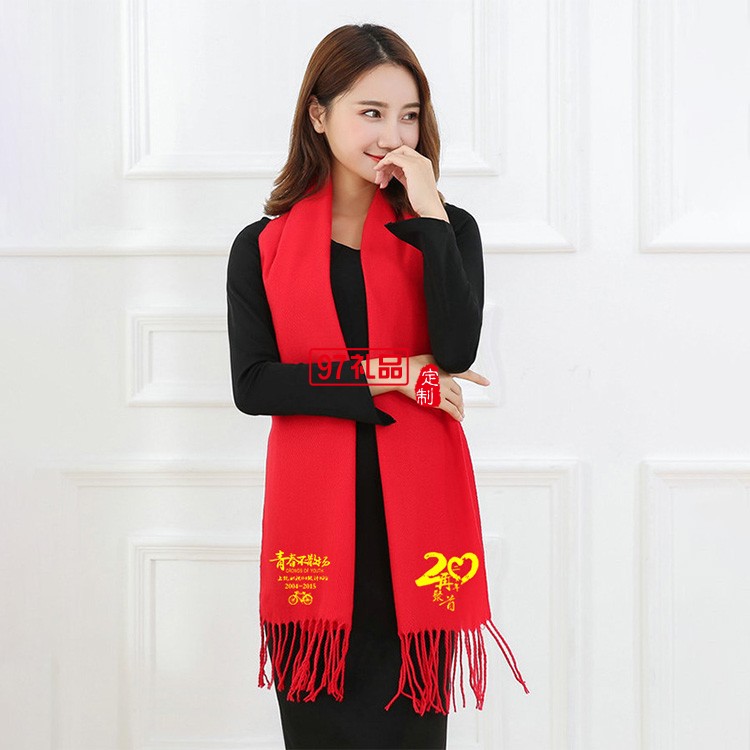 同學(xué)聚會圍巾刺繡定制logo年會禮品披肩保暖仿羊絨圍脖印字刺繡