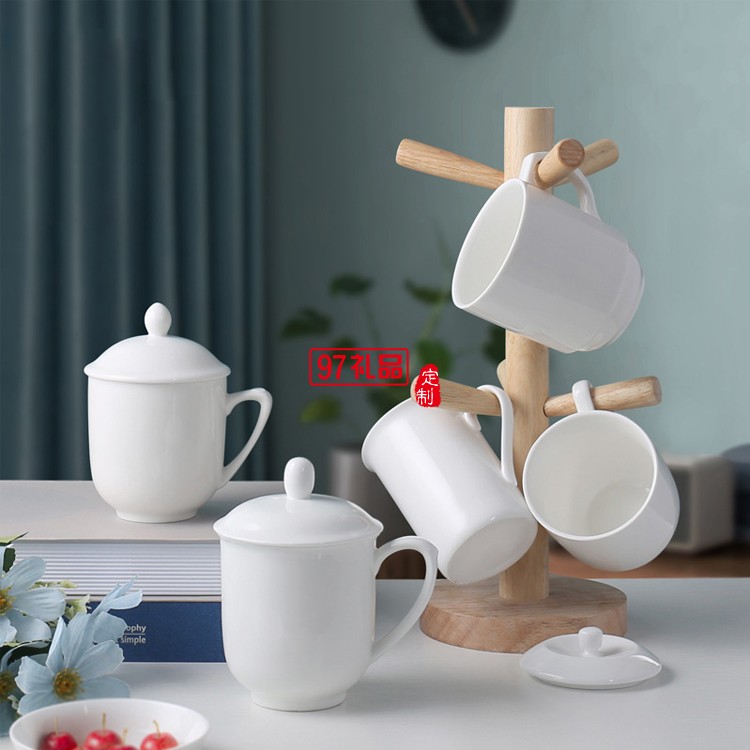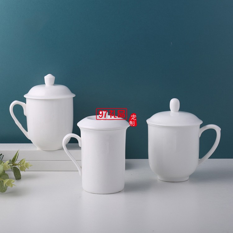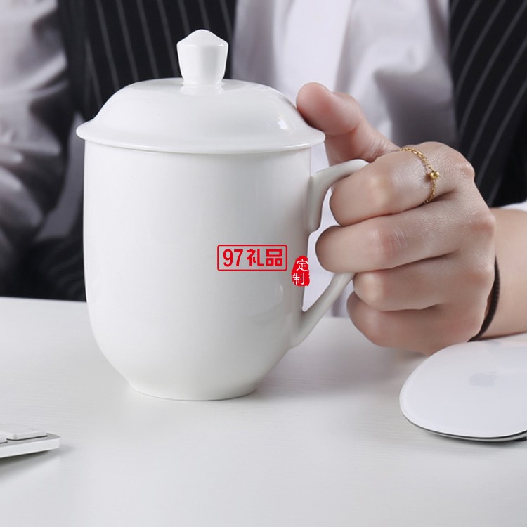 陶瓷水杯帶蓋 中南海式創(chuàng)意會(huì)議杯 可定制LOGO白