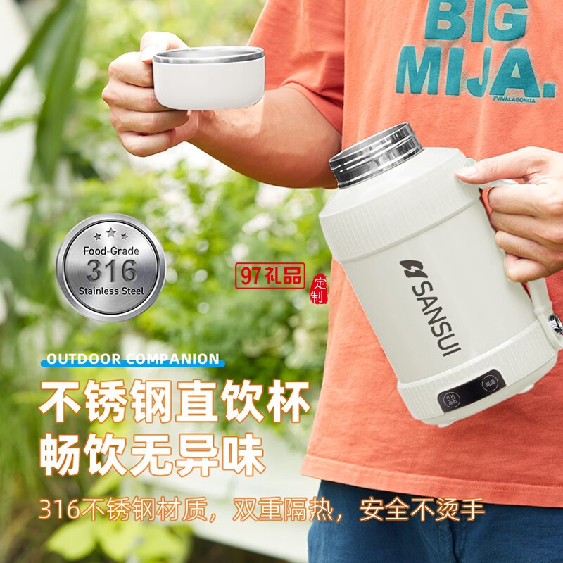 山水便攜真空電熱水杯(316不銹鋼內(nèi)膽)