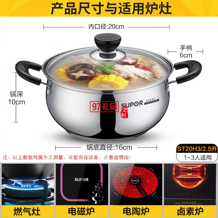 蘇泊爾 湯鍋304不銹鋼煮鍋 大奶鍋 湯鍋ST20H3定制公司廣告禮品