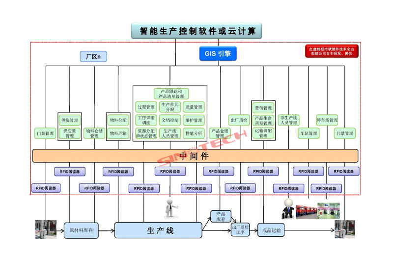 sinotech開發(fa)了一整套(tao)基于RFID的、先進的智能(neng)(neng)(neng)生產(chan)技術。這套(tao)技術以智能(neng)(neng)(neng)生產(chan)技術框架為主(zhu)線,針對不同需求(qiu),選擇特(te)定RFID功能(neng)(neng)(neng)模塊(kuai),搭配(pei)相應的GIS引擎、中間件軟件、RFID硬件等產(chan)品,構建(jian)形成(cheng)各類(lei)功能(neng)(neng)(neng)強大(da)的智能(neng)(neng)(neng)生產(chan)管(guan)理系統。
