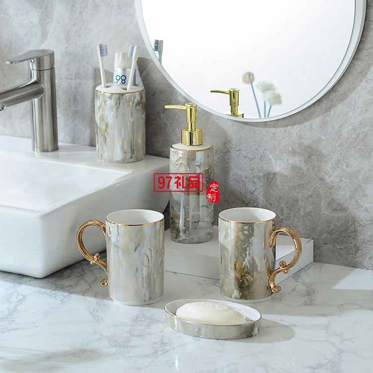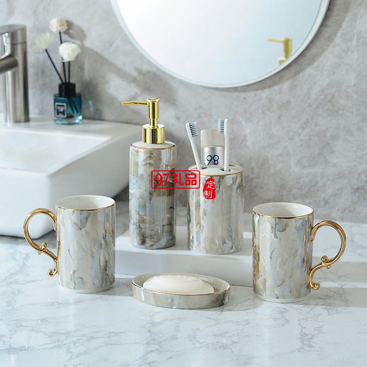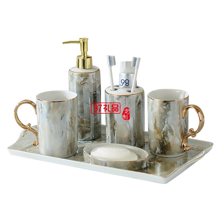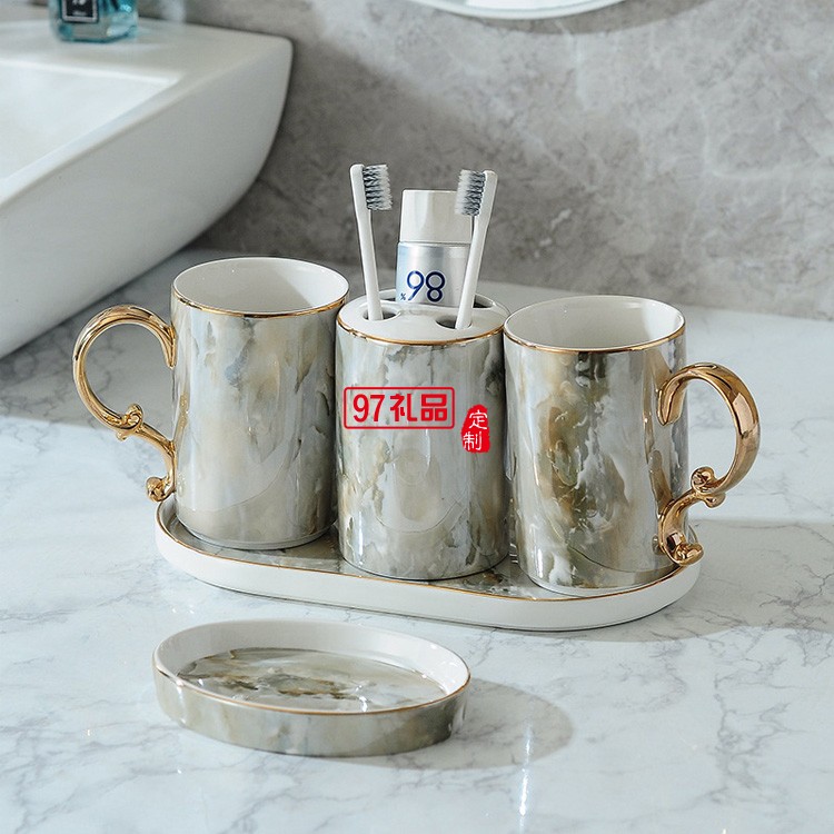 北歐浴室洗漱用品衛(wèi)浴五件套裝衛(wèi)生間刷牙漱口杯牙具陶瓷托盤套件