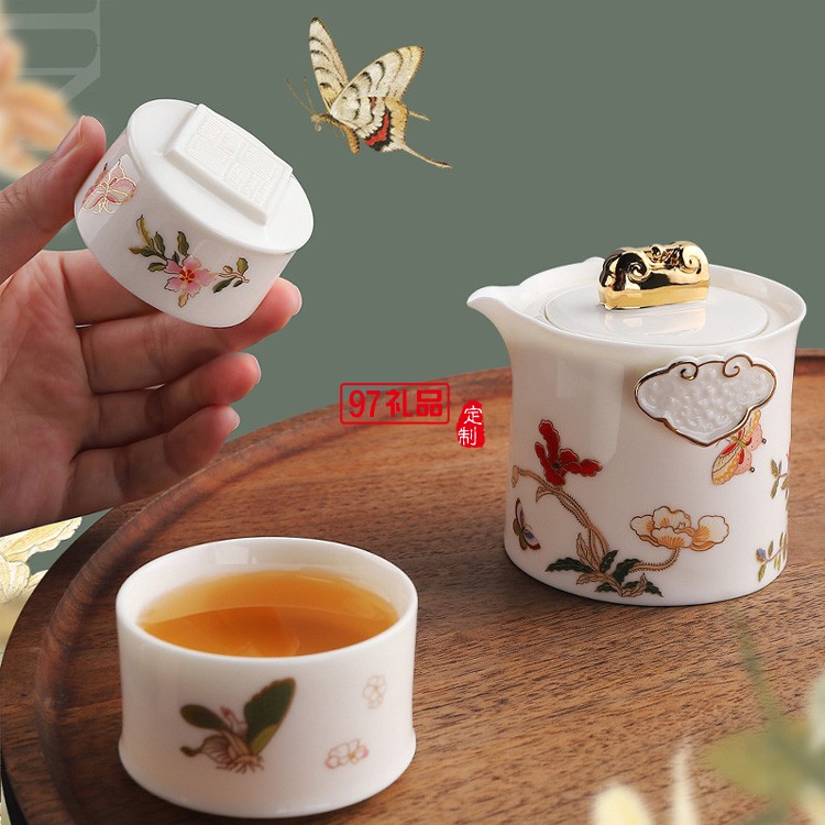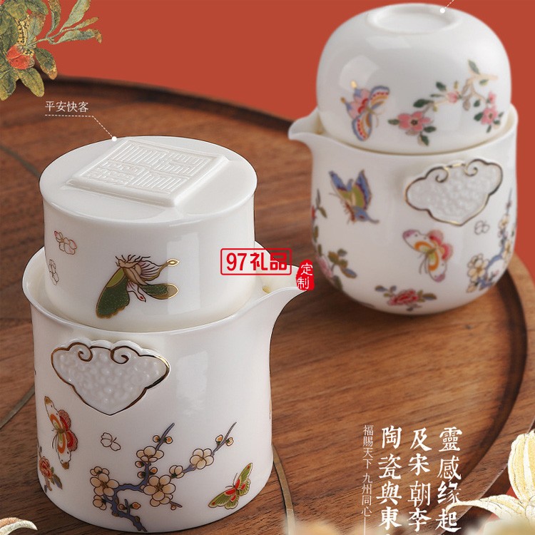 陶瓷快客杯一壺兩杯 新年國潮玉瓷描金功夫茶具套裝