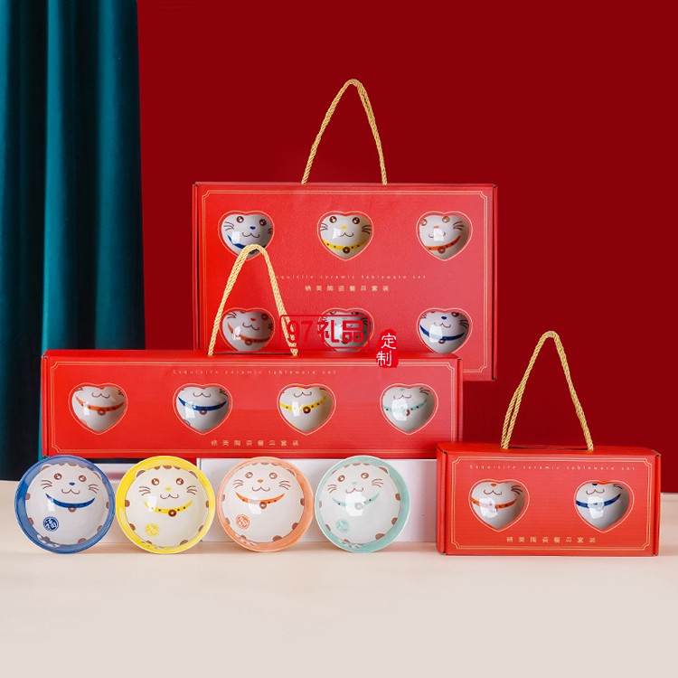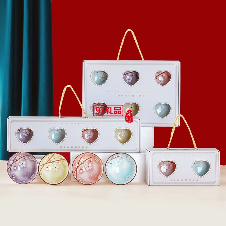 冰裂紋禮品碗套裝日式陶瓷碗餐具活動(dòng)開(kāi)業(yè)小禮物