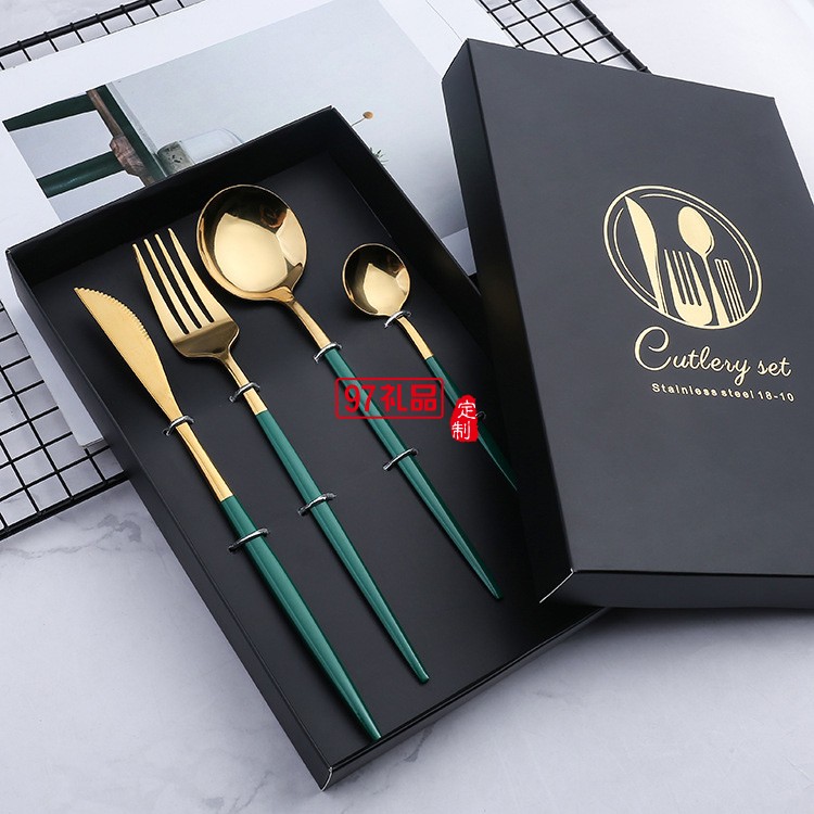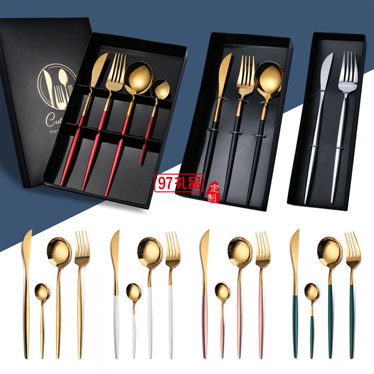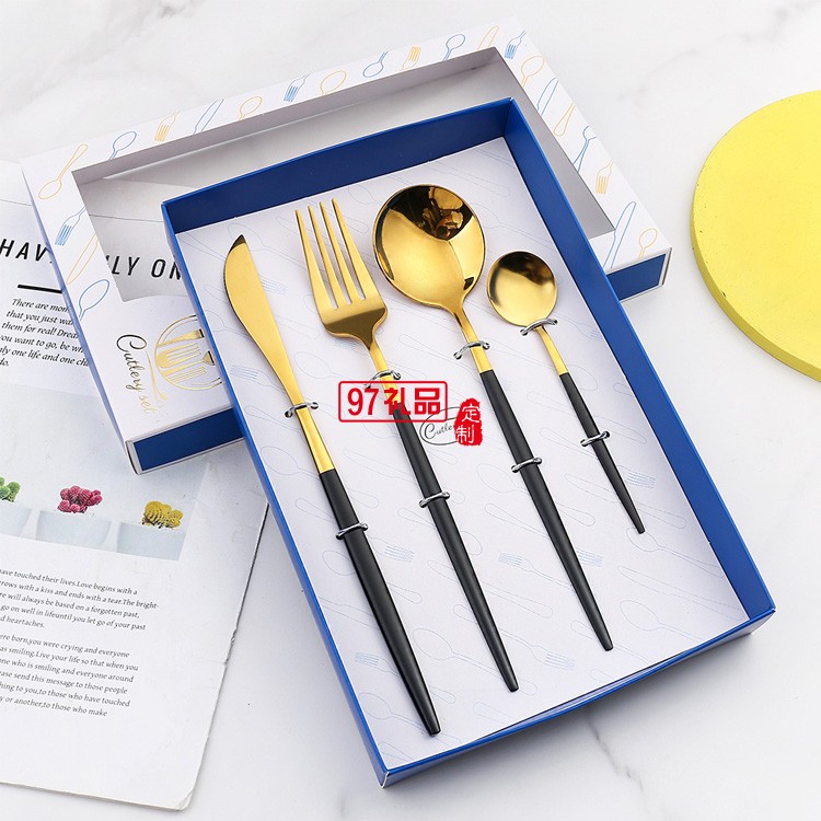 不銹鋼餐具 葡萄牙刀叉勺四件套 金色刀叉 西餐餐具套裝送禮禮品