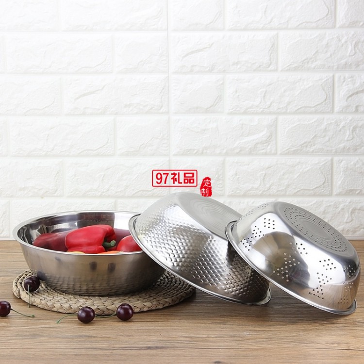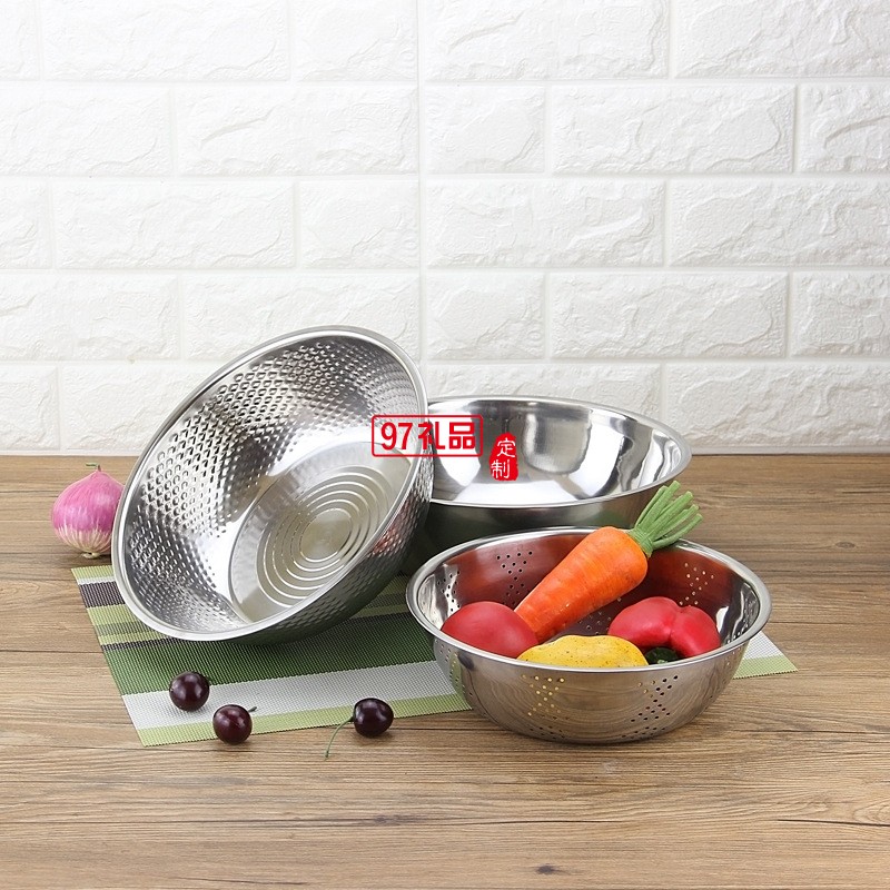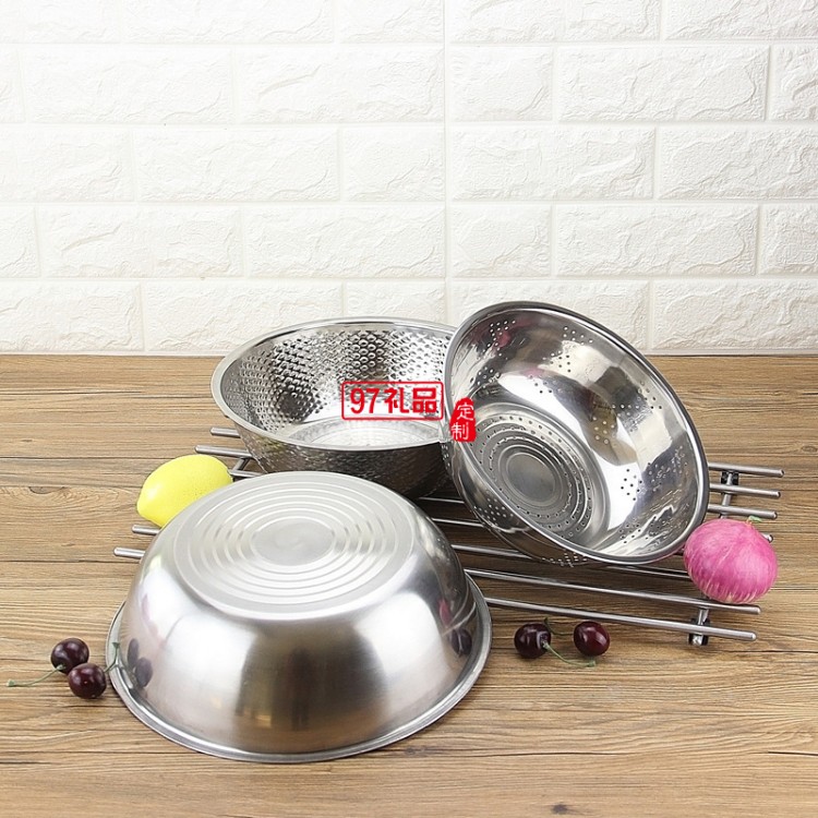 無磁不銹鋼淘米盆三件套 加厚廚房多用盆洗米篩套裝洗菜盆瀝水盆