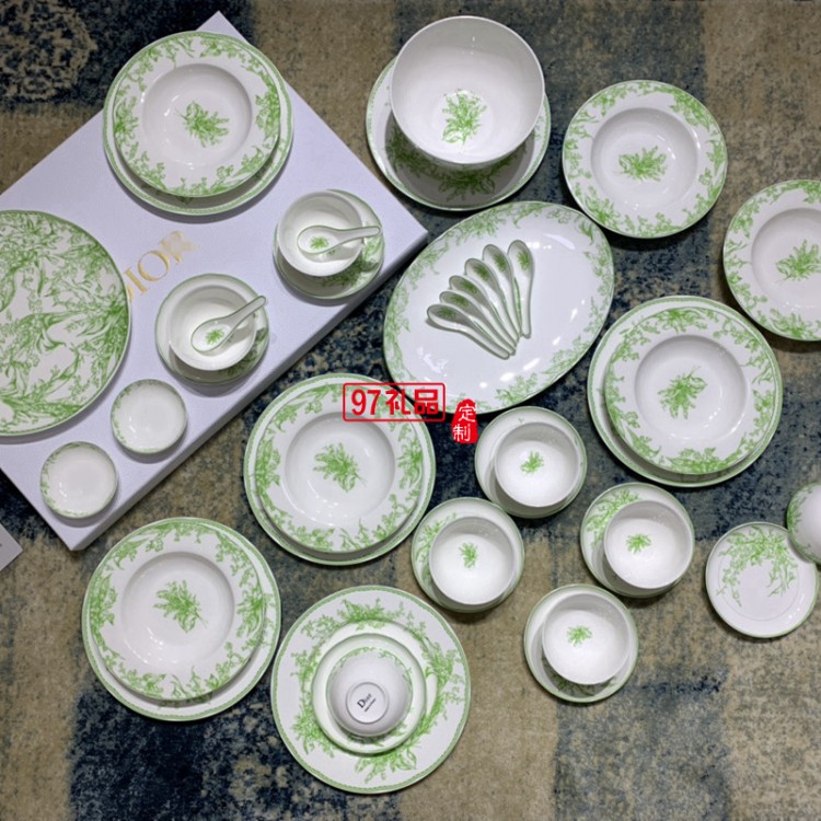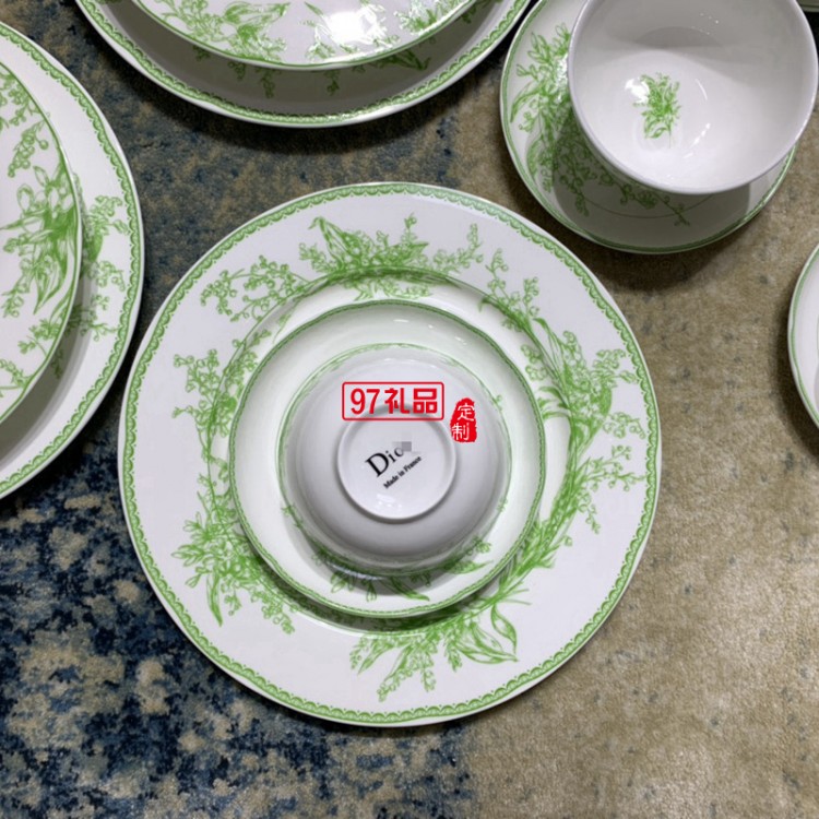 Do鈴蘭系列41頭餐具套裝禮盒DIO MAISON高級骨瓷綠色喬遷結(jié)婚