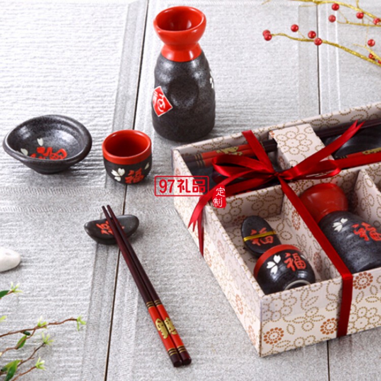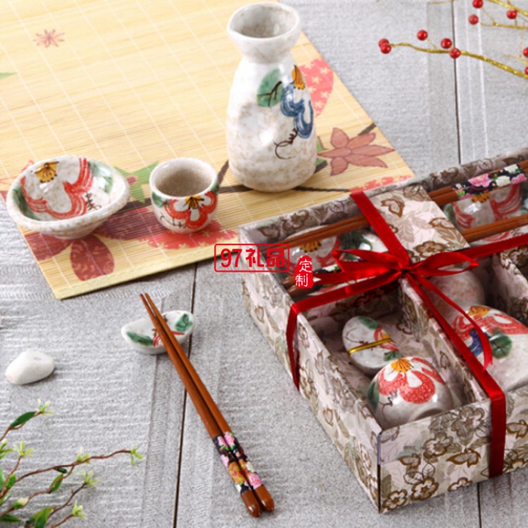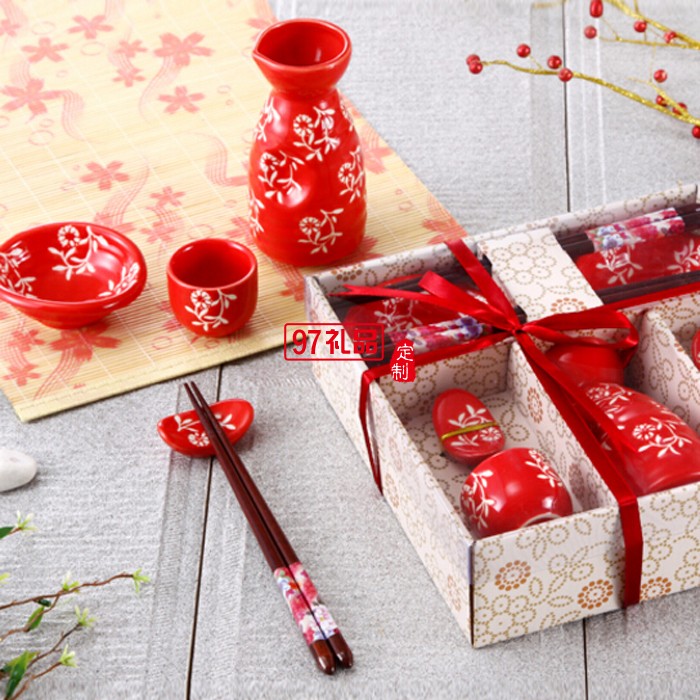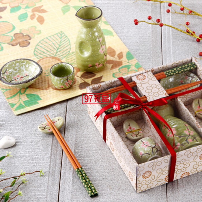 ?產(chǎn)品材質(zhì): 木筷子+陶瓷碟+       陶瓷杯+陶瓷架+陶瓷酒壺
