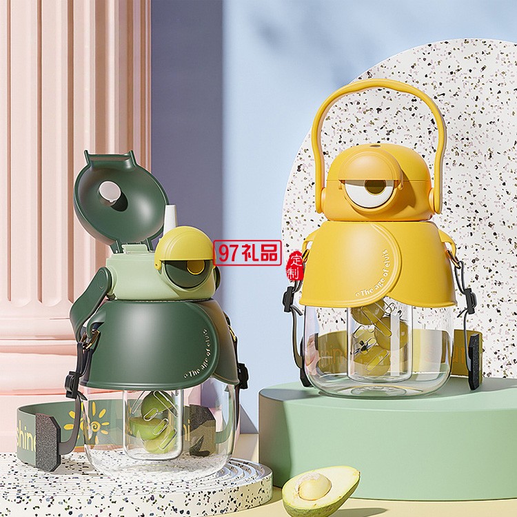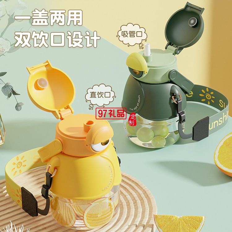 塑料杯卡通大容量水杯大眼萌果茶水壺吸管水杯禮品杯子定制