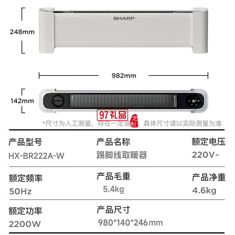 夏普石墨烯踢腳線取暖器輕音電暖器HX-BR222A-W定制公司廣告禮品