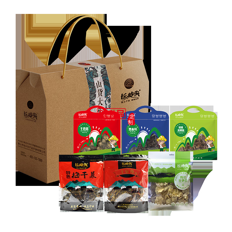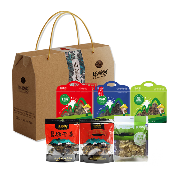 長(zhǎng)嶺尖長(zhǎng)嶺尖山貨禮盒844g常年款干香菇黑木耳梅干菜