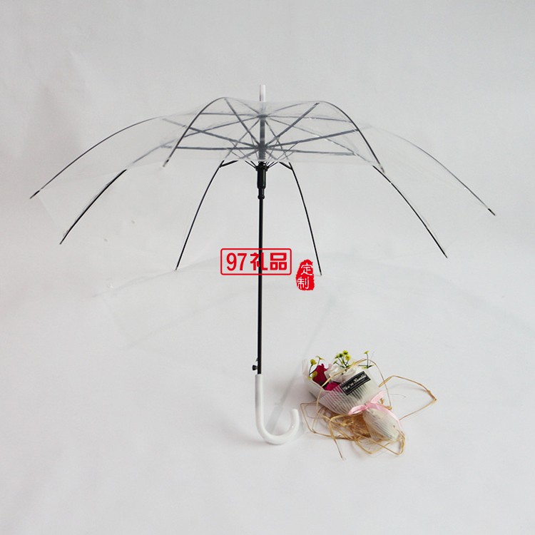 彩色透明雨傘 21寸POE塑料自動(dòng)雨傘定制公司廣告促銷禮品