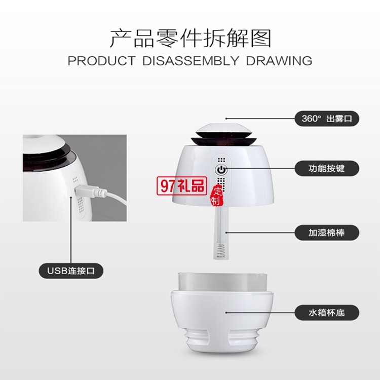 中國銀行定制 超聲波USB迷你加濕器 超靜音家用辦公室車載空氣加濕器