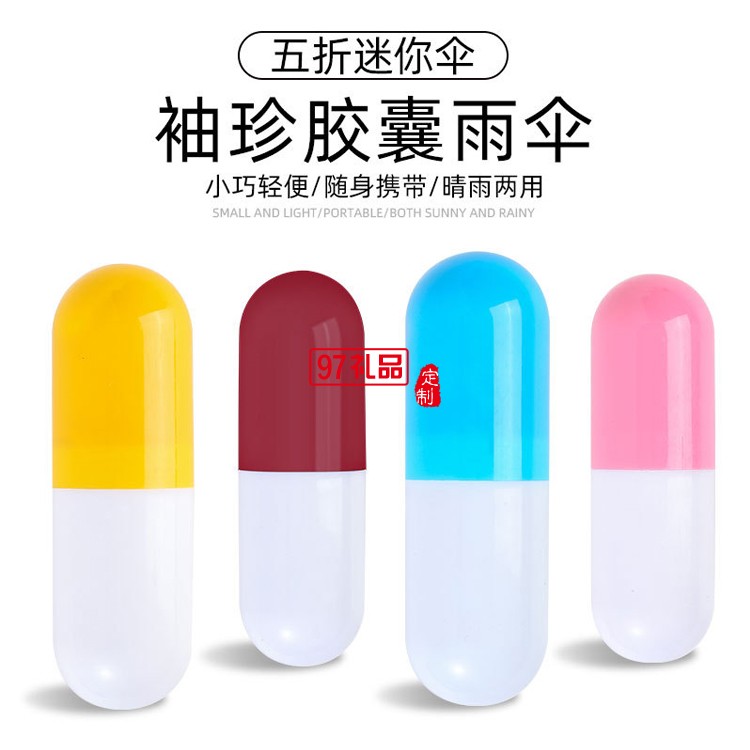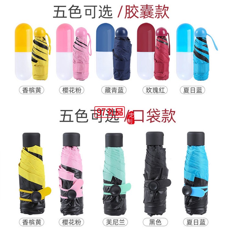 迷你膠囊雨傘五折黑膠傘男女折疊太陽傘遮陽口袋傘廣告?zhèn)愣ㄖ芁OGO