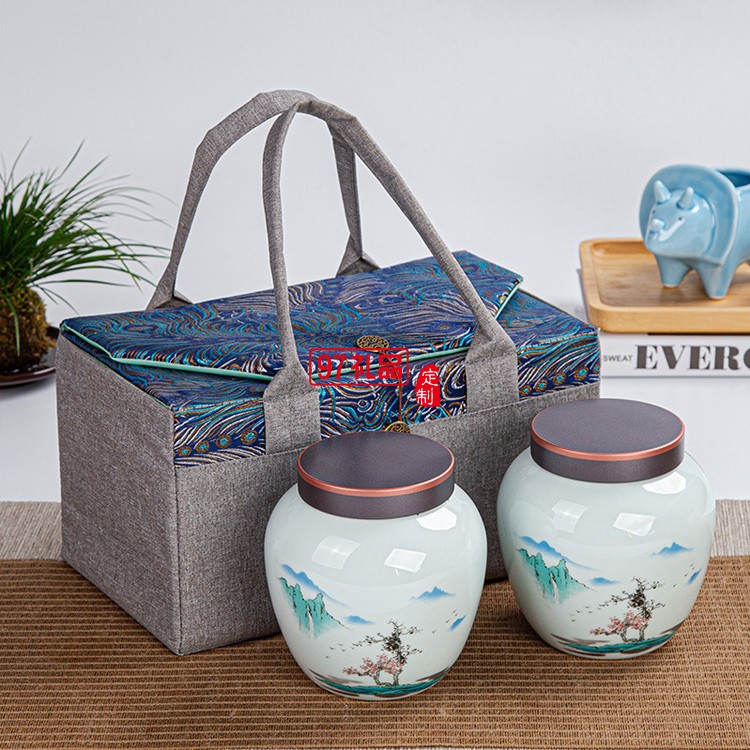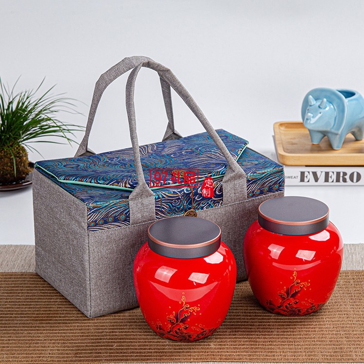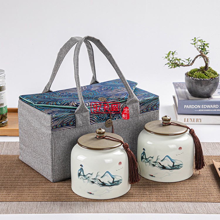半斤裝紅茶綠茶便攜手工刺繡布包茶葉包裝盒禮盒
