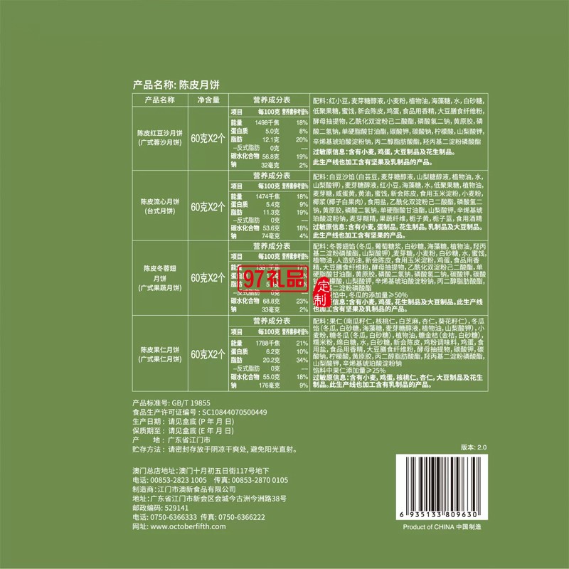 60g陳皮果仁月餅X2