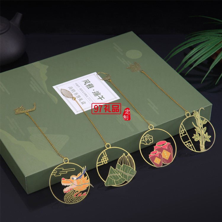 新品中國風(fēng)端午書簽套裝風(fēng)雅端午純銅紀(jì)念品可開模定制LOGO