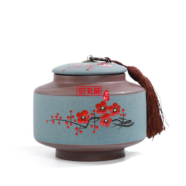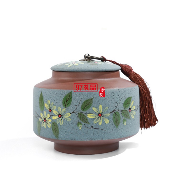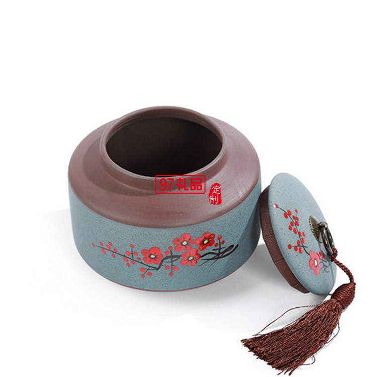 手繪陶瓷茶葉罐密封罐便攜定制公司廣告禮品