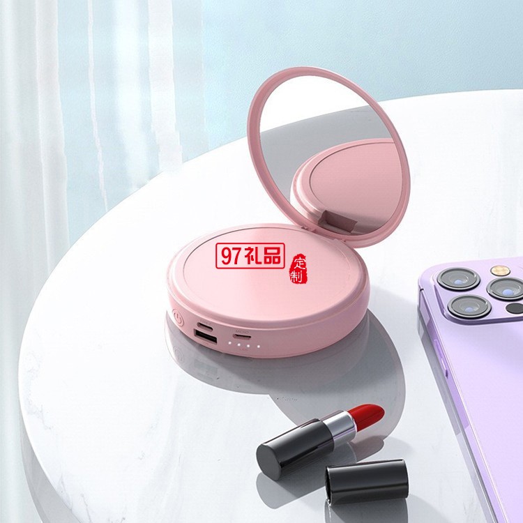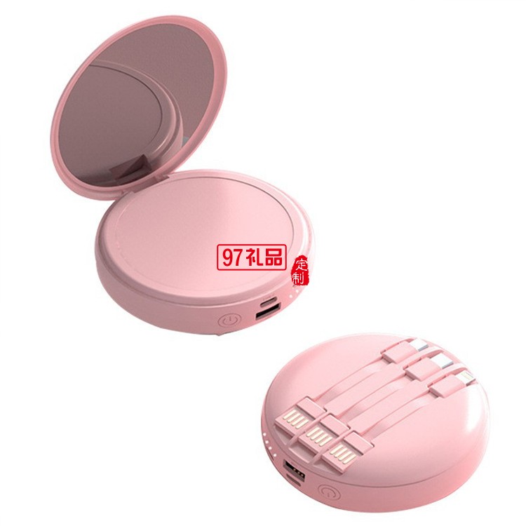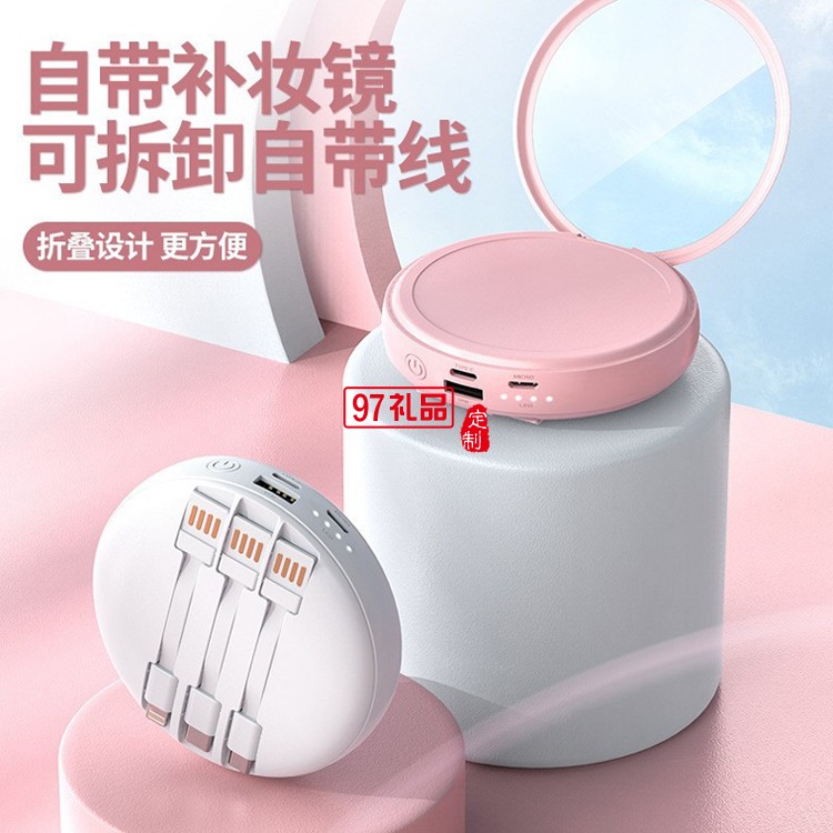 創(chuàng)意圓形自帶線充電寶迷你美妝鏡20000毫安