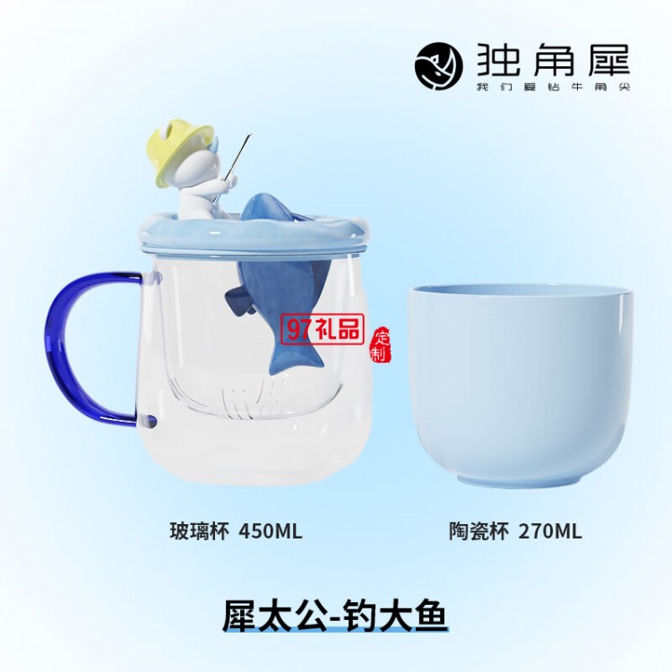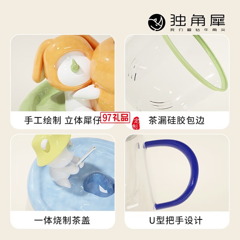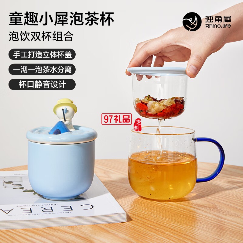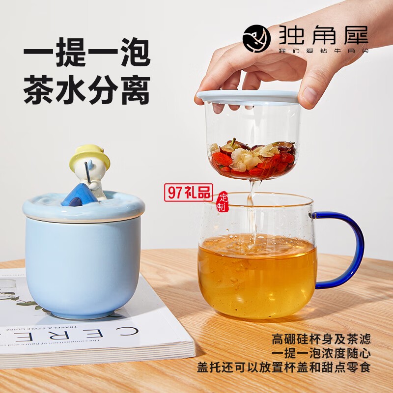 獨(dú)角犀童年系列茶水分離馬克杯套組拔蘿卜可愛玻璃杯