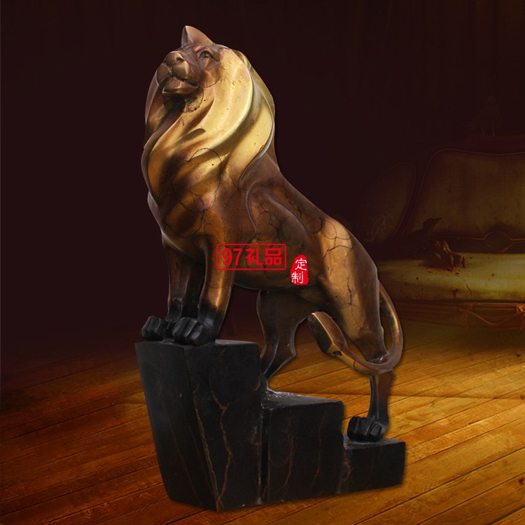 純銅擺件雄獅收藏家居辦公鑄銅工藝品擺件