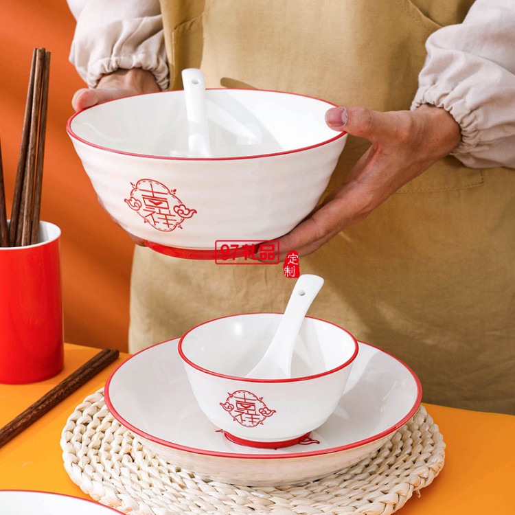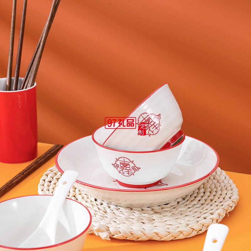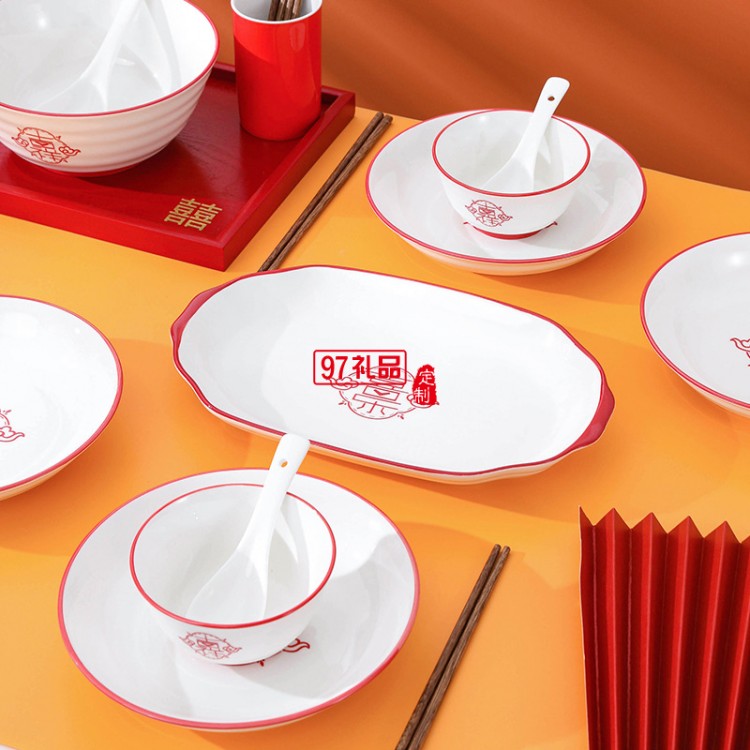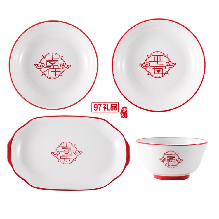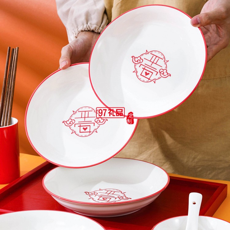 虎年喬遷喜慶餐具陶瓷碗盤碟套裝家用飯碗魚盤大湯碗菜盤子
