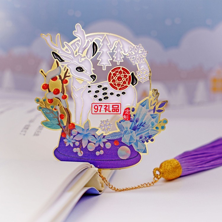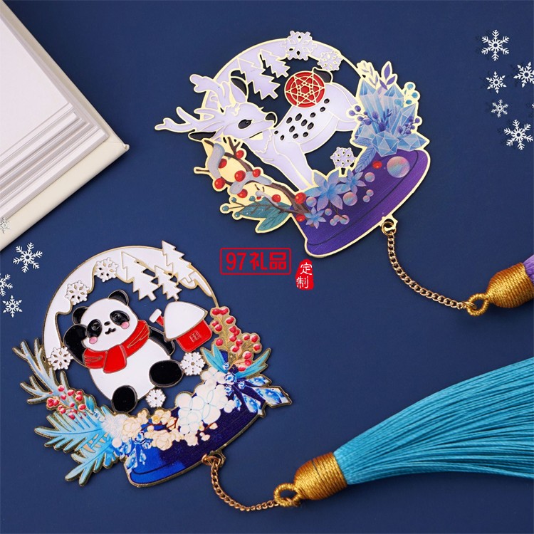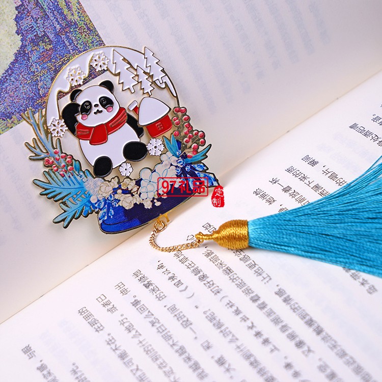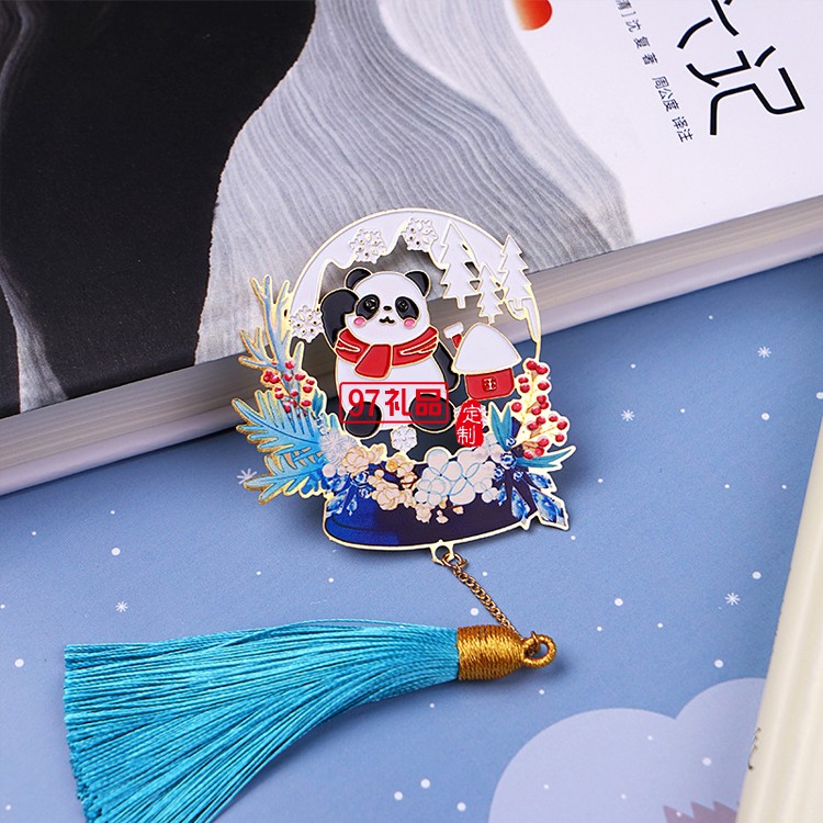 創(chuàng)意團(tuán)扇禮物熊貓彩色金屬書簽禮盒