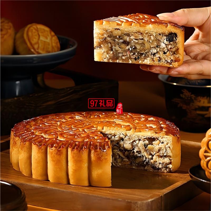 800g精制五仁月餅*1;50g流心奶黃月餅*2;50克蛋酥芝士月餅*2;