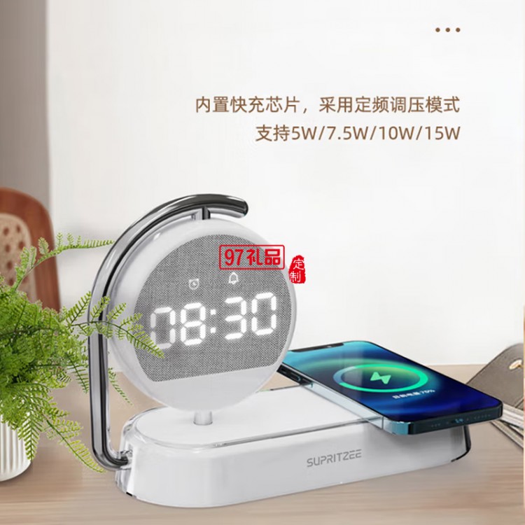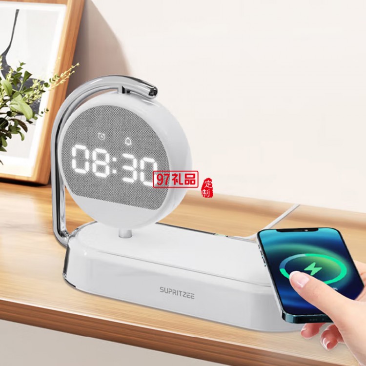 蘇浦瑞茲時鐘顯示+三組鬧鐘設(shè)置15W無線快充小夜燈