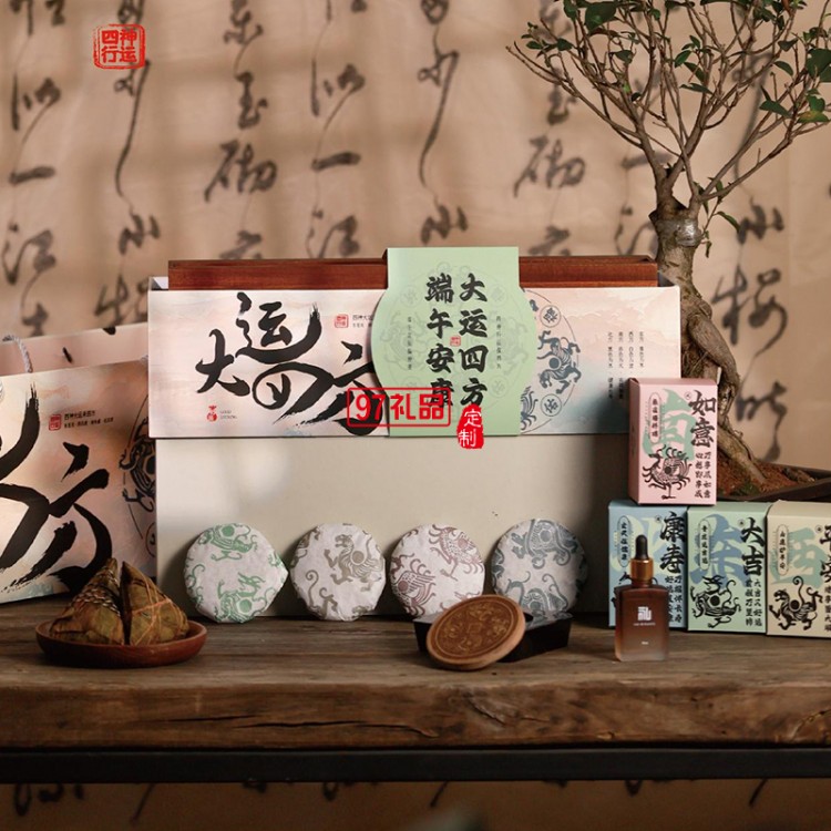 大運(yùn)四方四神木雕裝飾畫(huà)云南普洱茶蛋黃肉粽文創(chuàng)端午禮盒