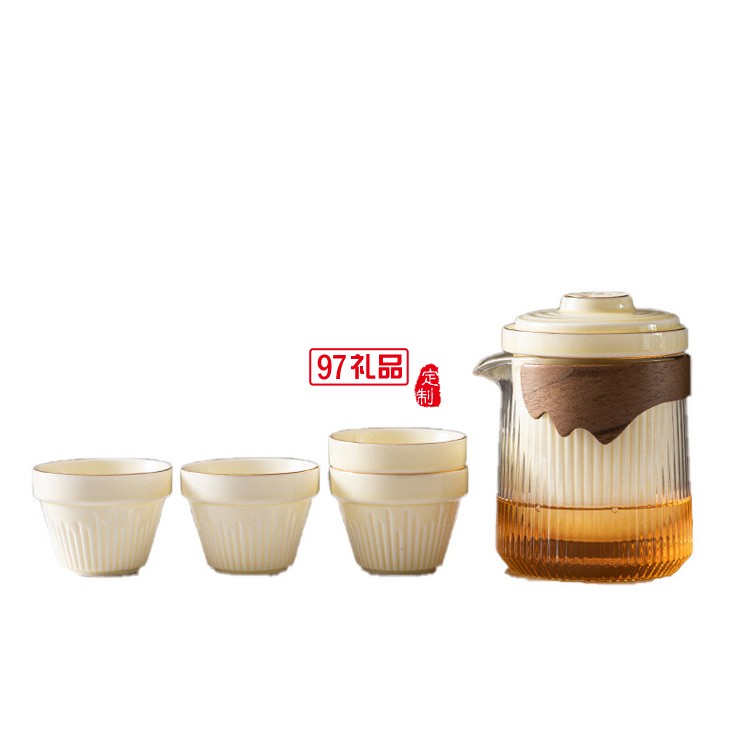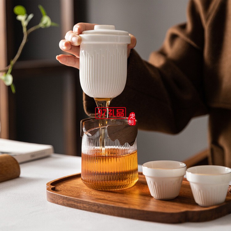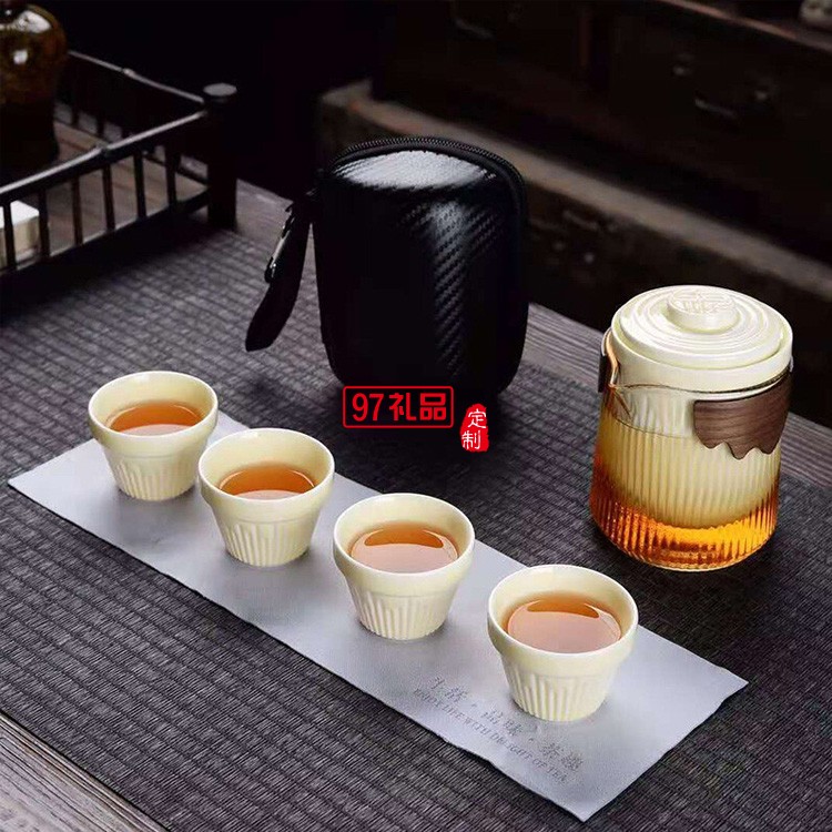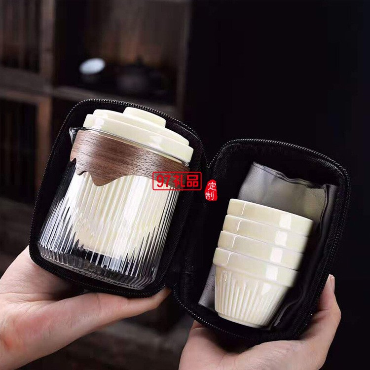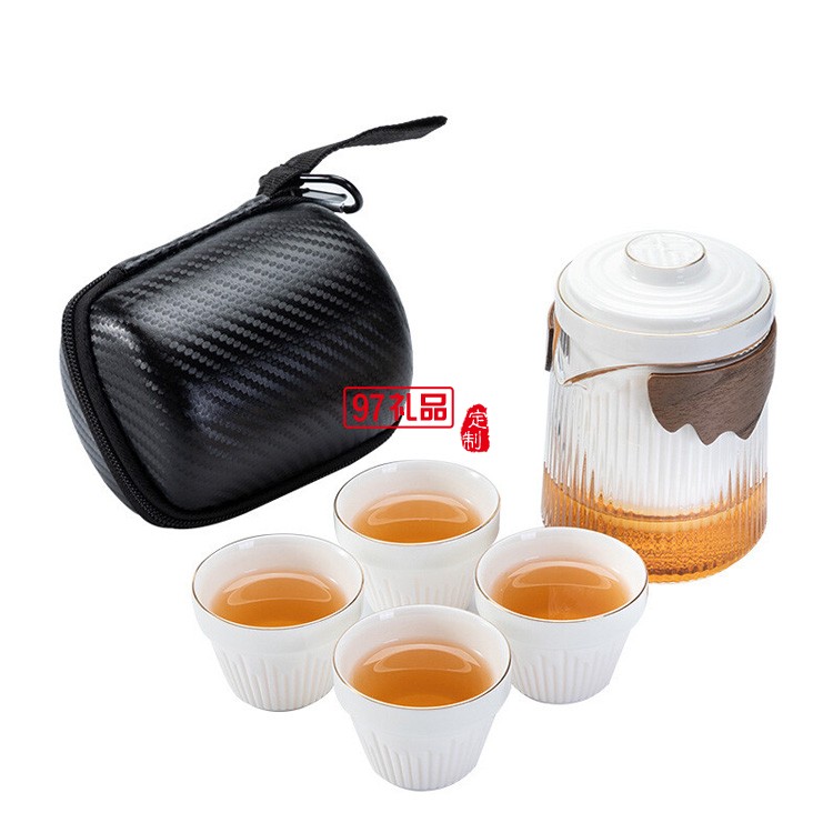 旅行路寶茶具小套一壺兩四陶瓷快客杯便攜式包
