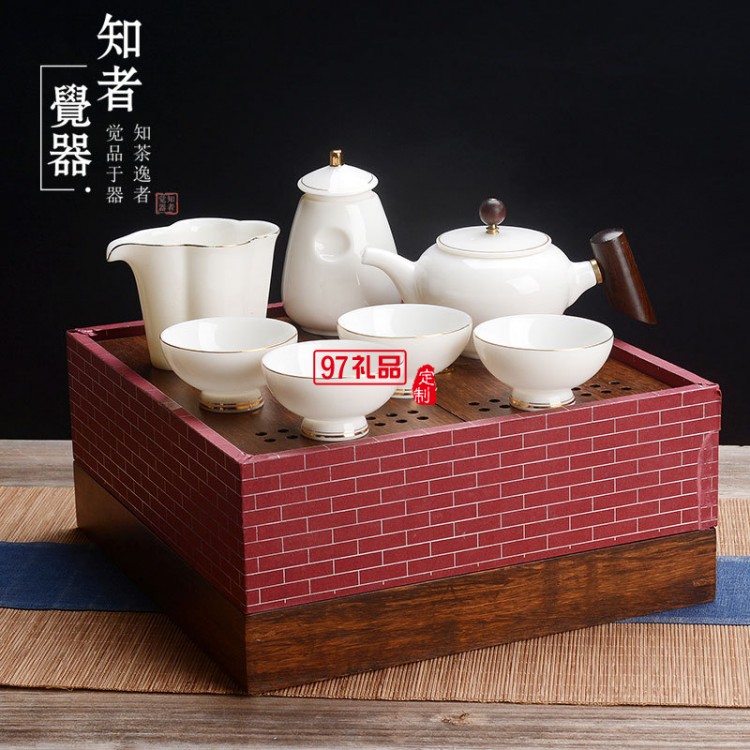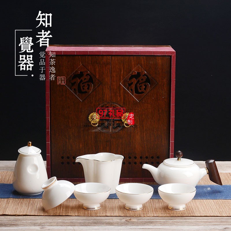 中式新款福臨門羊脂玉茶具套裝 商務(wù)送禮高檔商務(wù)禮品定制
