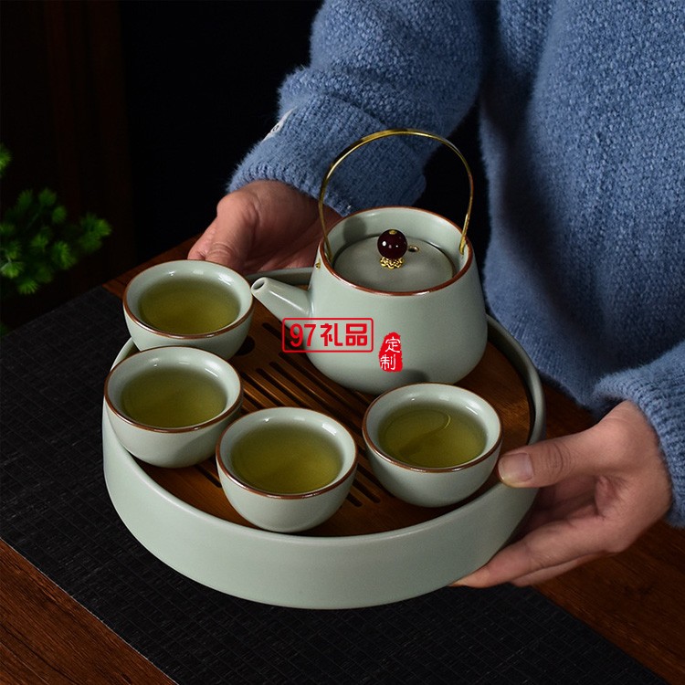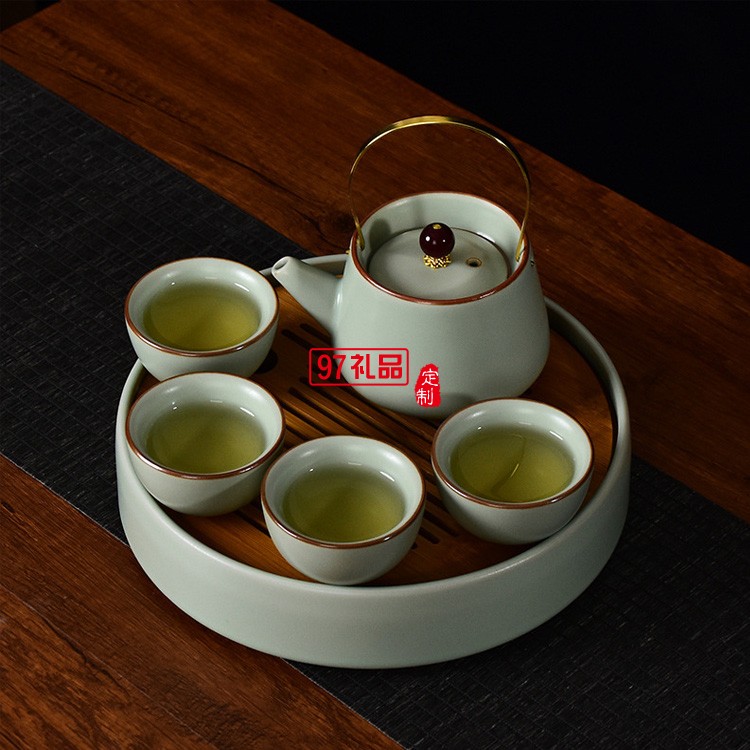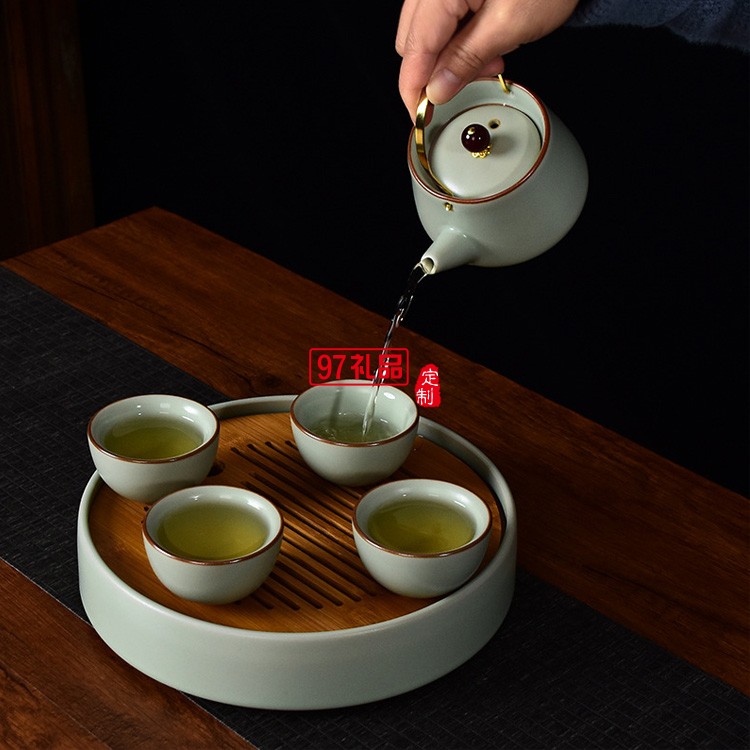 汝窯茶具套裝家用茶壺蓋碗茶杯單杯開片仿古汝瓷功夫茶具整套禮盒