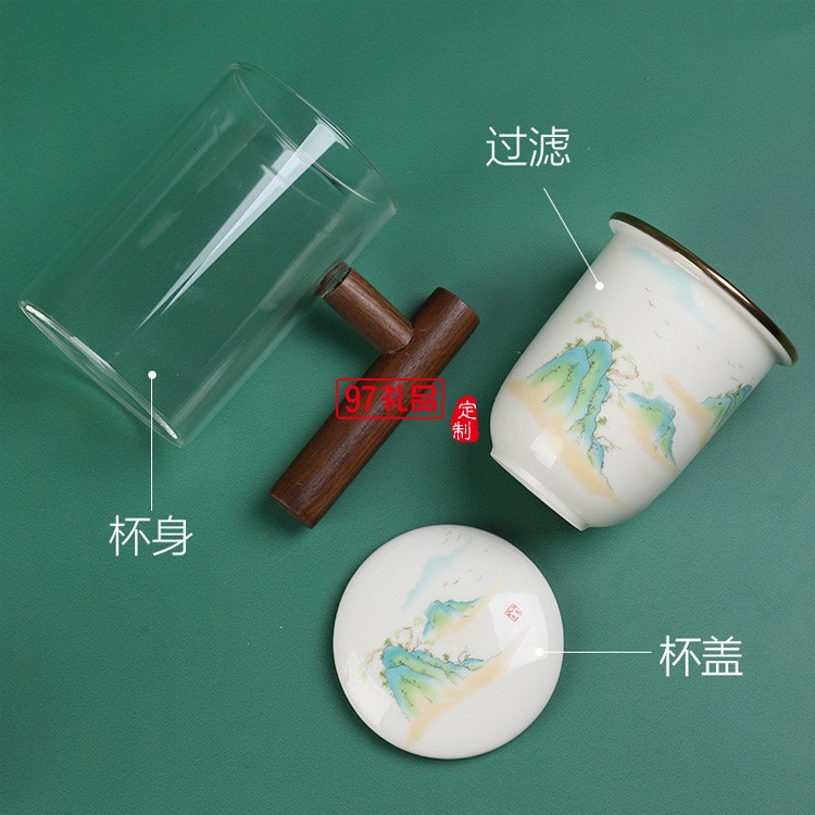 創(chuàng)意耐熱玻璃杯水杯馬克杯陶瓷內(nèi)膽過濾辦公杯茶杯木手柄泡茶杯