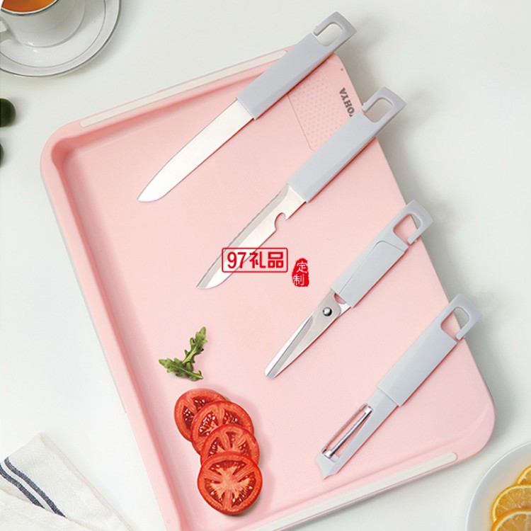 多功能雙面砧板含水果刀、鋸齒刀、輔食剪、水果刨刀等四個配件