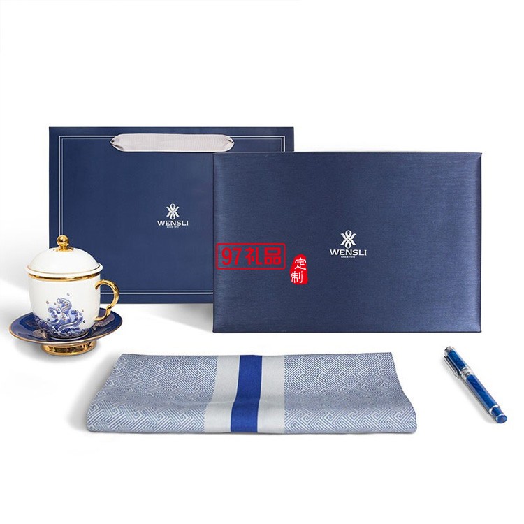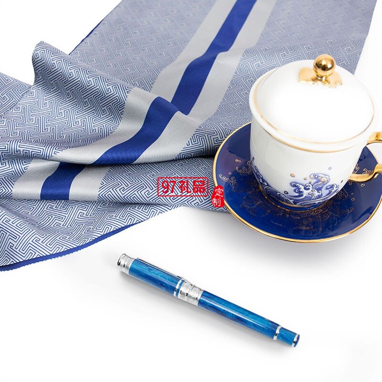 真絲長巾男高檔商務(wù)禮盒送禮 杭州絲綢長巾圍巾男瓷器元首筆套裝 君臨 灰