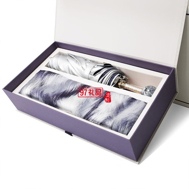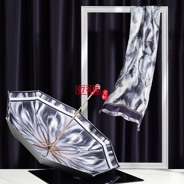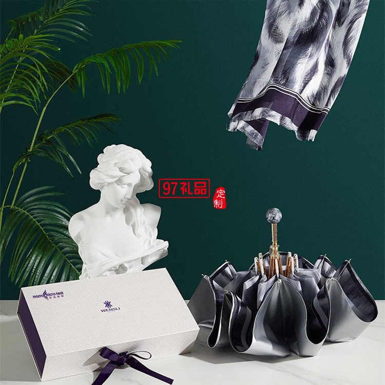 真絲桑蠶絲絲巾女防曬夏季禮盒 杭州絲綢長(zhǎng)巾紗巾防曬傘套裝送禮 達(dá)芬奇密