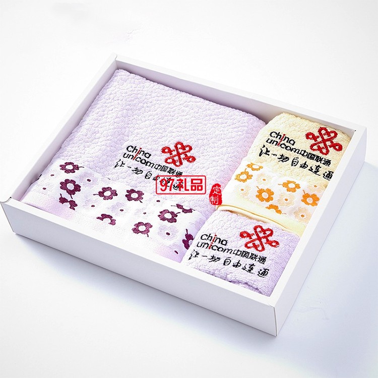 中國聯(lián)通定制高檔毛浴巾套裝純棉斷檔提花毛巾