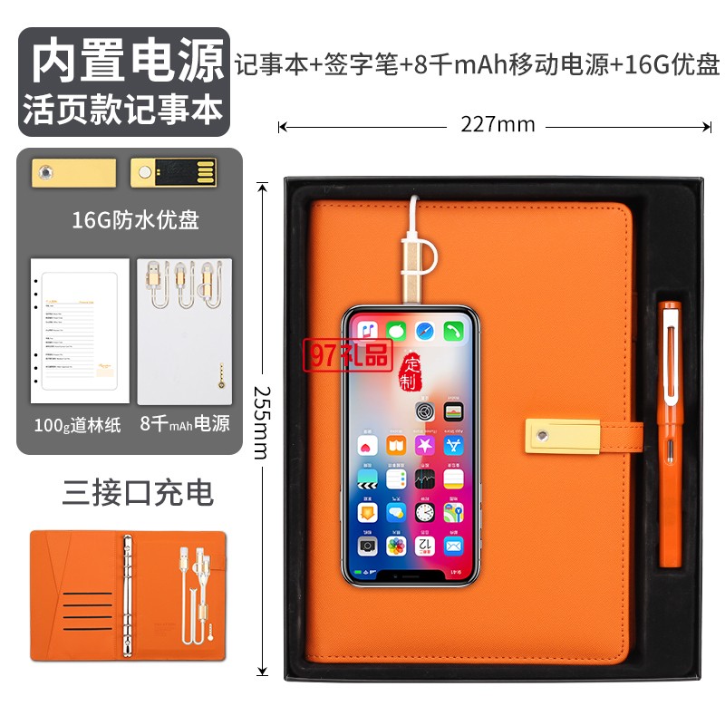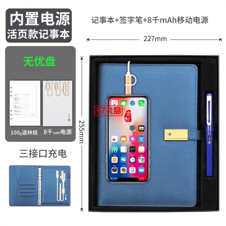 A5多功能電源筆記本+16G U盤+禮盒包裝+簽字筆