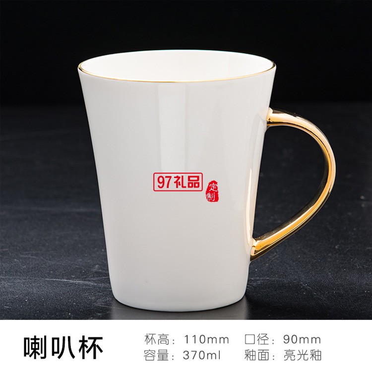真金柄陶瓷杯杯子鍍金手柄描金邊金口馬克杯禮品杯子定制