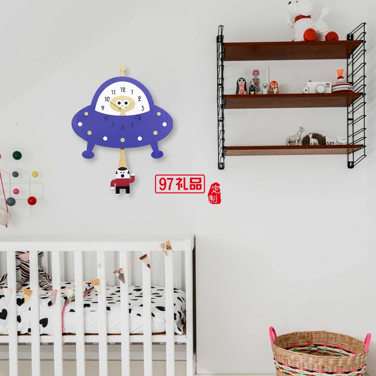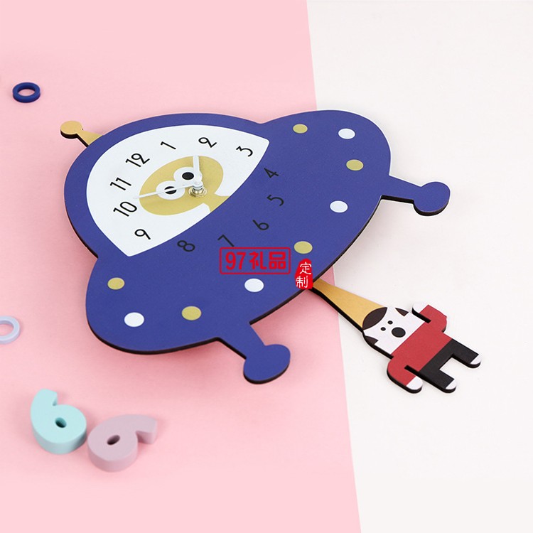 木質(zhì)卡通搖擺鐘 兒童房裝飾鐘表