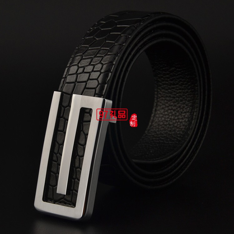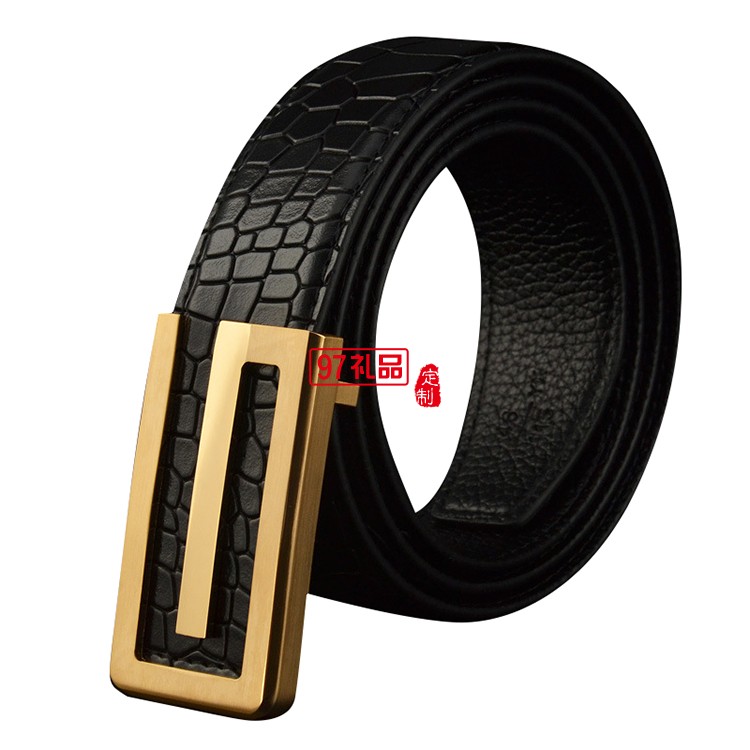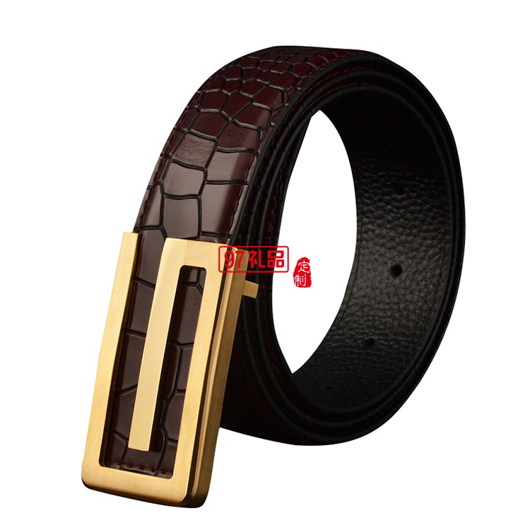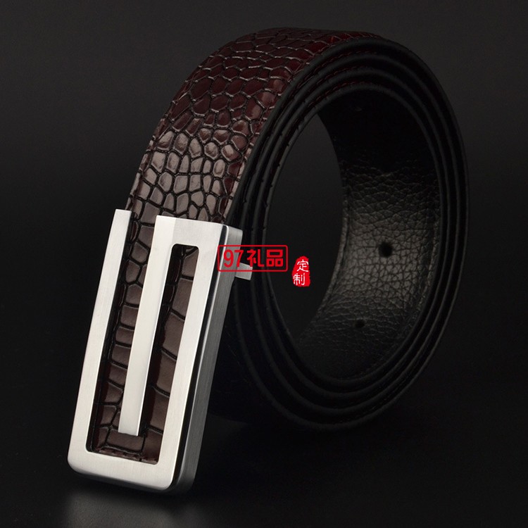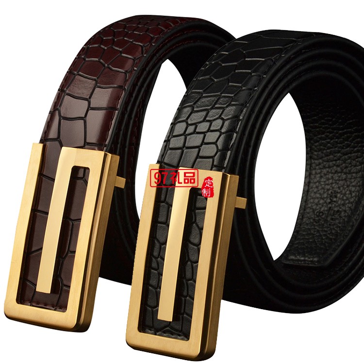 男士皮帶真皮頭層純牛皮平滑扣純銅鱷魚紋腰帶