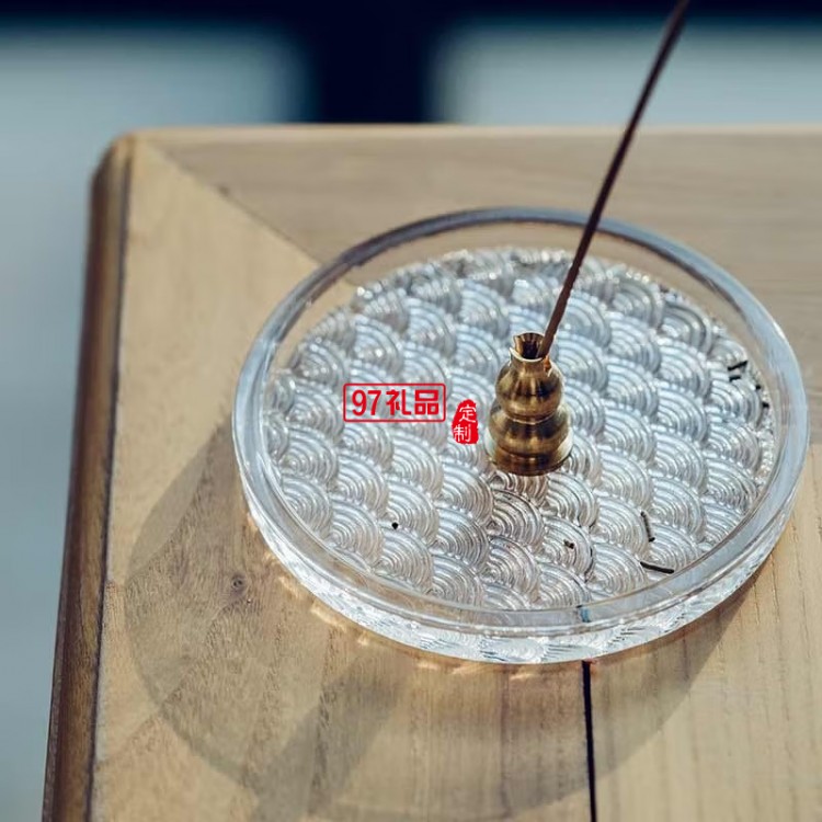 3、海浪紋玻璃香茶碟配銅制香插,美觀度極高。