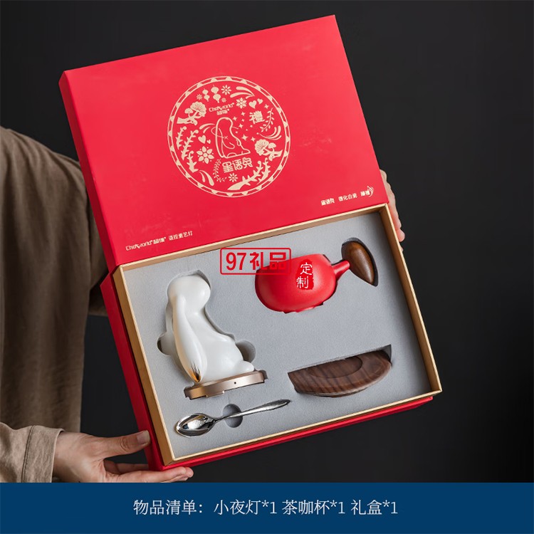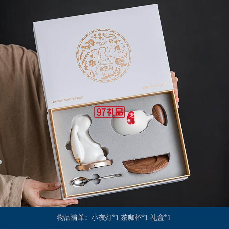 Choworld智能語音小夜燈星語兔語控瓷藝燈雙色茶咖杯套裝 中秋禮盒