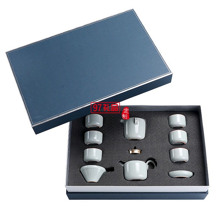 茶具套裝開片汝窯10頭茶壺功夫茶具禮品logo家用辦公路寶陶瓷茶具