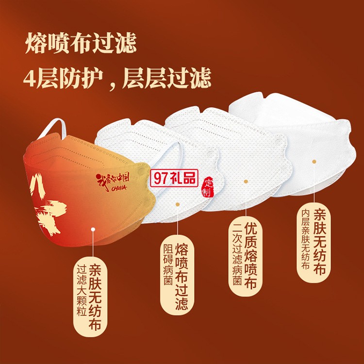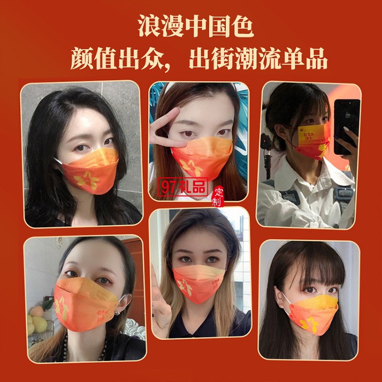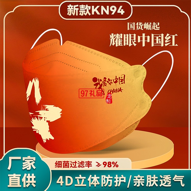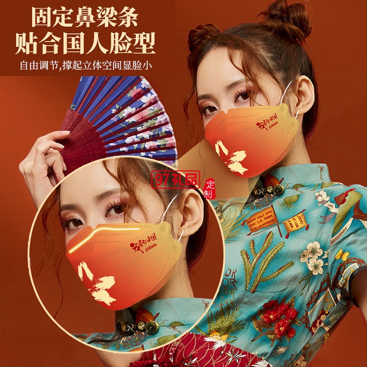 我愛你中國國潮KF94口罩成人一次性魚嘴型中國風(fēng)kf94口罩獨立包裝