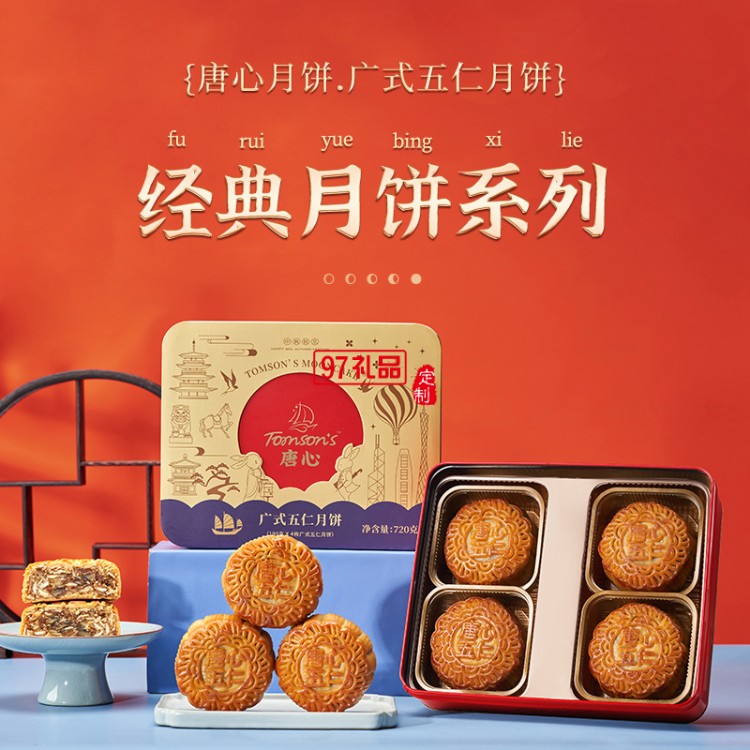 唐心廣式金腿五仁月餅禮盒裝廣式中秋節(jié)送禮糕點(diǎn)特產(chǎn)720g