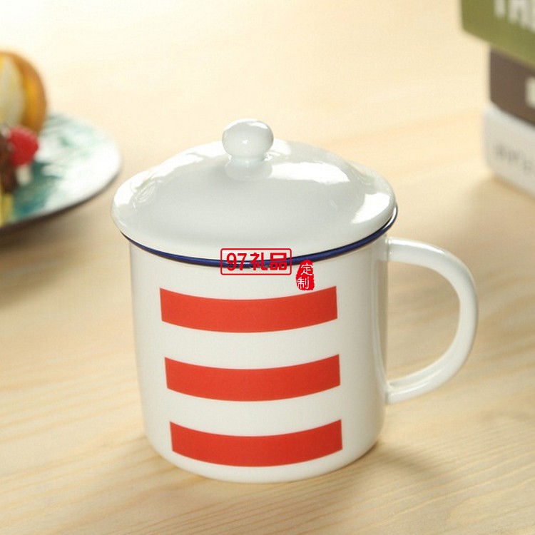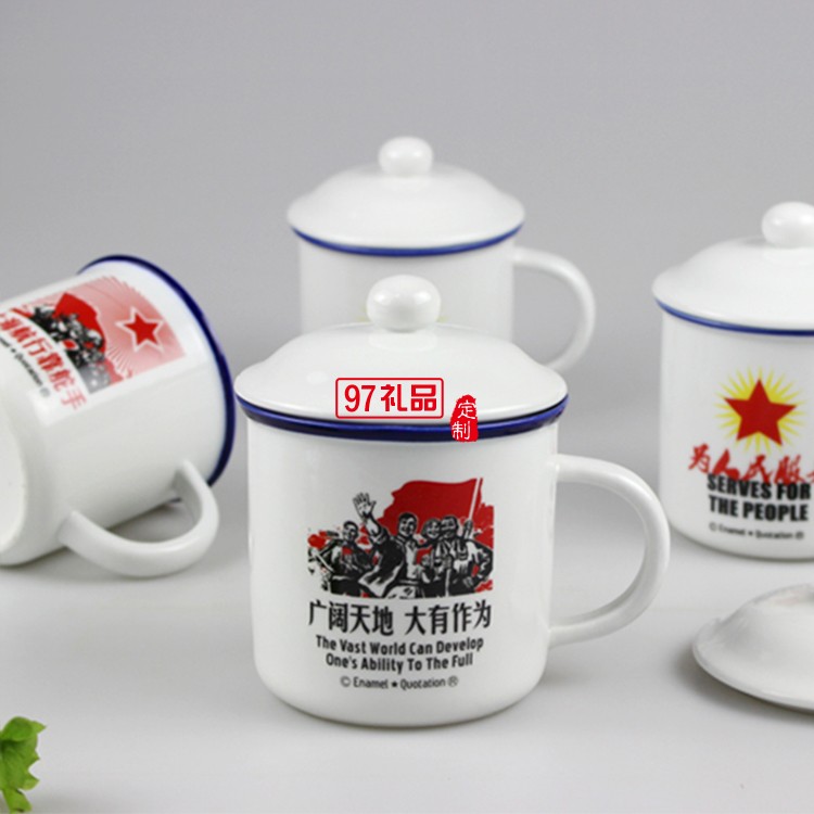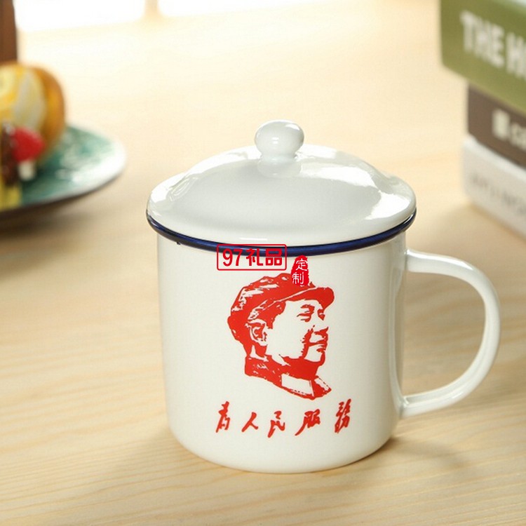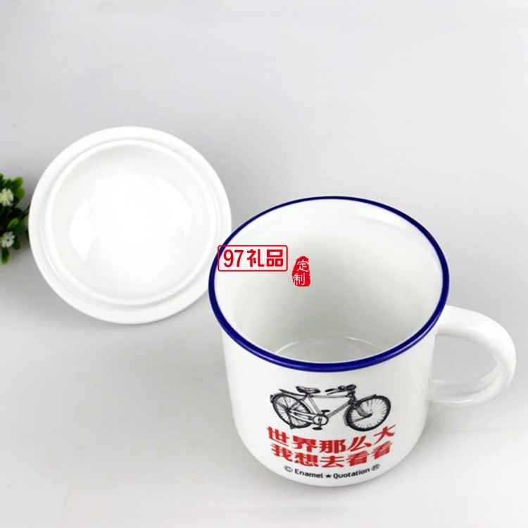 陶瓷杯 懷舊復(fù)古仿搪瓷杯 帶蓋馬克杯 陶瓷水杯 80后語(yǔ)錄水杯