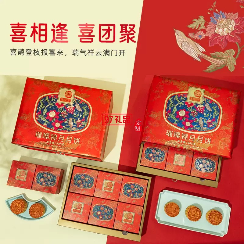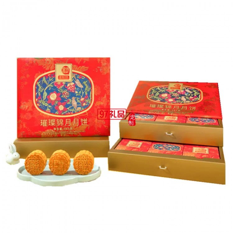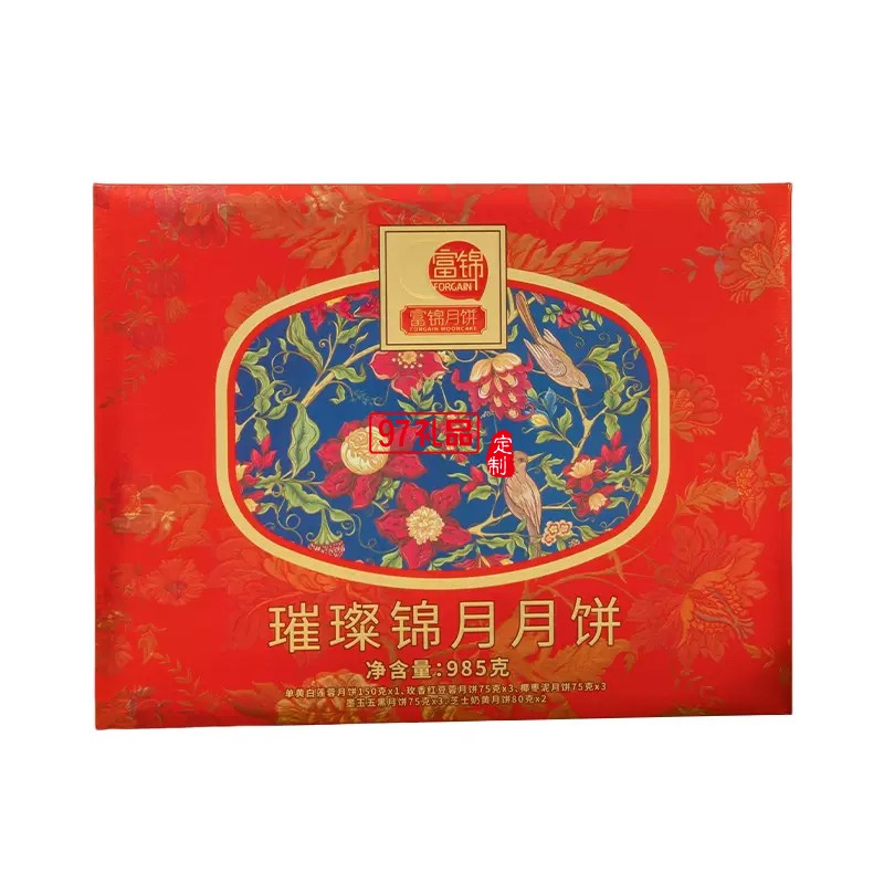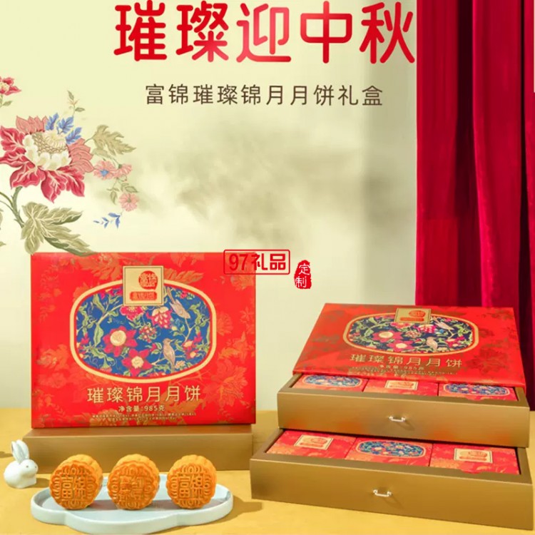 富錦璀璨錦月月餅985克8枚廣東廣式中秋送禮多口味禮盒裝