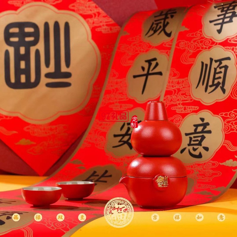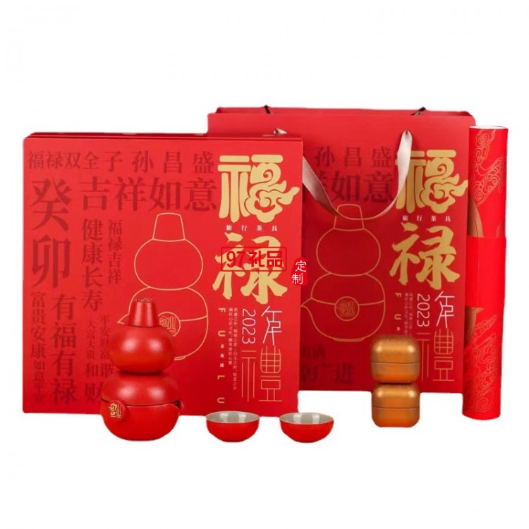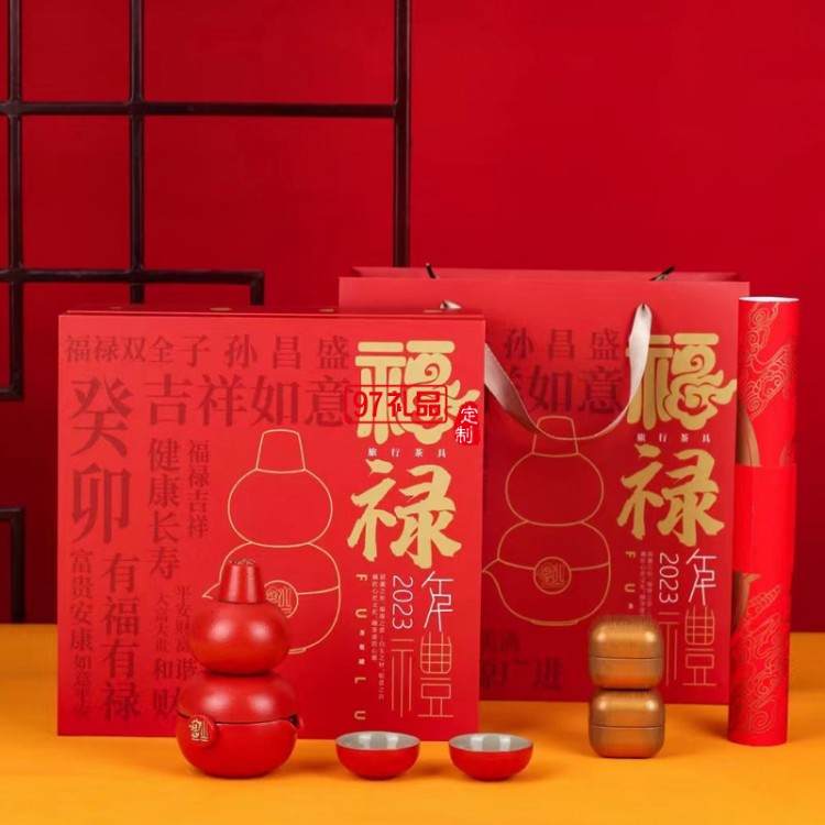 福祿創(chuàng)意黑陶茶具套裝隨手禮便攜茶葉罐高檔商務(wù)生日禮物春節(jié)賀歲